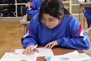 1年生国語は、「竹取物語」を使って「歴史的仮名遣い」学習。プリントに一生懸命取り組んでいました。