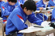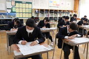 1年生国語は、「竹取物語」を使って「歴史的仮名遣い」学習。プリントに一生懸命取り組んでいました。2年生理科は、「骨と筋肉のはたらき」学習。腕には32本の骨(実物を使って)があって、52本の筋肉があることを学びました。3年生英語は、「英作文」学習。「自然に対して私たちは何ができるのか?」とタブレットも使いながら書いていました。