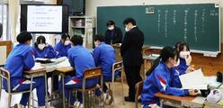 「多様性と共生社会」を学習していました。これからの時代を生き抜いていく大切な教材だと思います。先生の丁寧な問いかけにたいして思慮深く応答していました。ナイーブな内容だけに生徒自身もその部分を察していました。