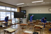 本日、1時間目行われました。卒業式の動きが本格化しました。寒い中、在校生が椅子を設置し、きれいにふきあげていました。丁寧に取り組む姿勢が卒業式成功につながっているのだと感じました。お世話になった卒業生のために・・・ その後、3・4時間目は3年生のみの卒業式練習の予定です。