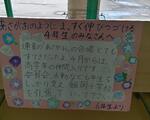 生徒会が『日常生活の中でのあいさつに意識を向け、活発なあいさつが飛び交う学校をつくるため』の取り組みです。「あいさつフラワー」は、2年生のMさんとYさんが作成しました。2月24日(火)まで行います。やり方は、期間中、廊下や教室で「いいあいさつをしていた」と感じた人のことをカードに書いて掲示する方法です。最も多く名前が書かれた人が表彰されます。今はまだ、花は咲いていませんが、近いうちにいっぱいになると思います。授業参観にお越しの際は、ご覧ください。