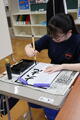 3年生の習字では、「大志を抱く」という文字に熱心に取り組んでいました。(3年生になると5文字になります)バランスが難しそうです。厳かな雰囲気の中で筆を進めていました。