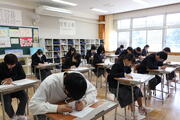 昨日の「学びの深化」プロジェクトとは方向性が違いますが・・・国・数・社・英・理の順で受けています。(理は、午後になります)真剣に問題に向き合っています。進路実現に向けて目指せ学力向上!!