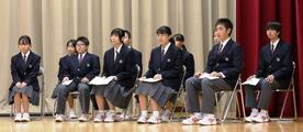 朝、生徒会選挙当選者に認証書が副校長先生から手交されました。これから旧生徒会執行部と引継ぎをしながら、文化祭まで一緒に取り組みます。頑張れ新執行部!!