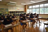 夏休みの学習の成果を試す実力テストが行われています。国語・数学・社会・英語・理科の順番です。生徒たちは、熱心に問題に向き合っていました。結果はいかに?