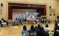 3年生の習字では、「大志を抱く」という文字に熱心に取り組んでいました。(3年生になると5文字になります)バランスが難しそうです。厳かな雰囲気の中で筆を進めていました。