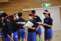 ①3年生は、組団のリーダーであるという自覚と責任感を持ち、全体を引っ張っていくという決意を仲間や後輩に向けて表明する場とする。自分たちで最高の思い出となる運動会をつくりあげようとする意欲をもつ。②1、2年生は、組団への所属感をもつとともに、組団の仲間や先輩とともに、運動会を成功させようとする意欲を高める。紅組スローガンは、「獅子奮迅」。白組スローガンは、「天下無双」です。さあ運動会組団活動のスタートです。