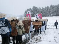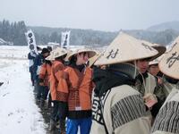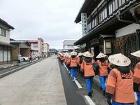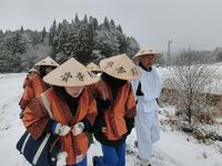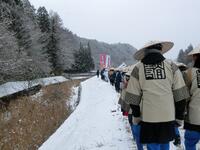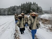 12月15日(日)に、骨寺村荘園中尊寺米納め(本寺地区地域づくり推進協議会主催)に、本校ふるさと隊から20名が参加しました。雪が舞う厳寒の中、法被や笠をまとい、地域の人たちと一緒に米納め行列を組んで、大切なお米を本寺から中尊寺へ無事運び届けました。