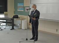 11月27日、星上通信株式会社代表取締役の滝上賢彦さんらに足をお運びいただき、SDGs推進講演会「厳美で行えるSDGsのために」と題し、SDGsに関する実際の企業の取り組みなどをお話しいただきました。滝上さんからは、背伸びするのではなく日常でできることを取り組むこと、環境を守る身近な取り組みの継続が、自他の健康や、差別、貧困の解決につながるというお話をいただき、生徒たちは自分の生活や学校の生徒会での取り組みに生かしていくという思いを強くしました。