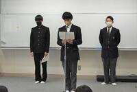 1月14日(火)に3学期始業式が行われ、授業日数41日間の3学期がスタートしました。校長先生のお話しの後、各学年代表から、冬休みの反省と3学期の決意が発表されました。3学期はまとめと次年度への準備、そして3年生は受験に向けての大事な学期です。それぞれの目標に向かって頑張ってほしいと思います。