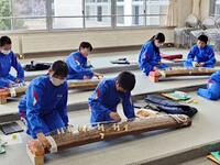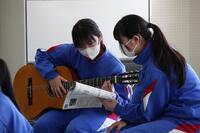 1年生は、和楽器「箏」に取り組んでいます。箏を前に礼儀作法も意識しながら奏法を学び、和の伝統や文化を感じています。3年生は、「ギター」に取り組んでいます。既にギターを趣味にしている生徒も多く、生徒同士で教え合い協力しながら練習しています。最初は思うように弾けなくても、音を奏でることを心から楽しんでいるようです。これからもずっと、いろいろな音楽に触れあって音楽を楽しんでほしいと思います。