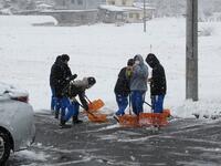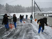 2月7日(金)は、来年度の入学説明会がありました。昨夜から降り続く大雪となりましたが、説明会に来る小学校6年生と保護者の皆さんを安全にお迎えするために、3年生の有志が玄関や通路、駐車場の雪かきを行いました。水気の多い重い雪でしたが、みんな一生懸命作業にあたり一面きれいに除雪されました。